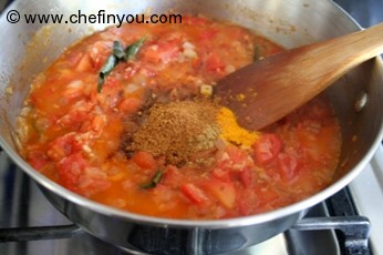 2. Tomatoes: I think I use 2 generous cups of chopped tomatoes. If your tomatoes are sour/tart tasting, you can add some jaggery towards the end to offset it. You can also reduce/increase the amount depending on your taste