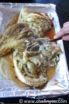 Loved your recipe :) But i donot prefer making bhartha this way.. I mean baking the whole eggplant at once.!!! Actually i m afraid of any insect infestation in the eggplants, so i cut them into pieces and then i cook them afterwards in the pressure cooker :-)