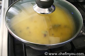 4. If not, put the rice with the water it was soaking in, along with the spices (except mint) in a pan and bring to a boil over high heat.