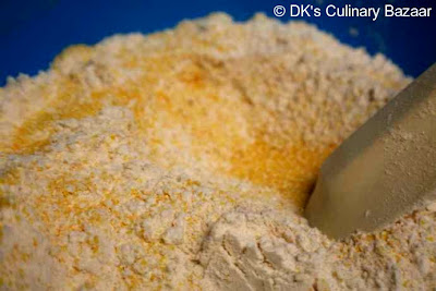'Pane Giallo' in Italian means Yellow Bread. This Mediterranean special, uses a very colorful mix of Polenta and Red bell pepper to make a golden colored bread that is bursting with flavor. Drizzle some extra virgin olive and served hot along with soup would make you smile and satisfied.