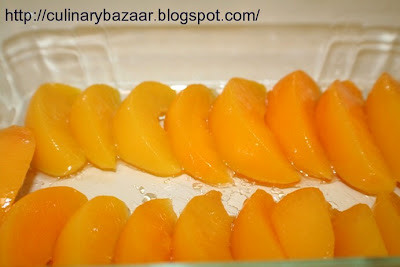 I have been hunting for peaches all over - Without success..I am no fan of canned stuff. But then since the season is all over, i thought of them ...I found 100's of candied 100 other things but No Peaches! Guess, I did lots of grumbling and mumbling, cos how else do i explain the incident which happened y'day evening..