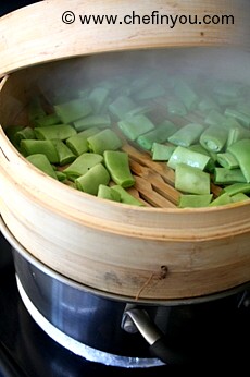 and when bright and tender, immediately cooling the beans in an ice bath or under cool running water. I simply chose to steam them for less 5 minutes