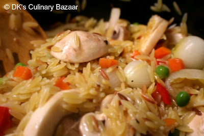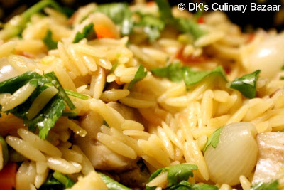 But one hitch was that, I find it hard to consume food without my usual servings of vegetables. I need them in every meal. I had no desire to make a side dish since I was not sure what side dish would go well with orzo, so I went ahead and twisted Heather's recipe to suit my palate and came up with the one below. It tasted awesome and my special thanks to Heather for inspiring me for this dish.
