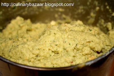 This step is not necc. but I find raw onions here little sharp and strong,so saute it first. You can skip this step and go to next straightaway.Grind coriander leaves, onions,ginger with Toor dal with no water. It should be a coarse paste with salt, if not added before.