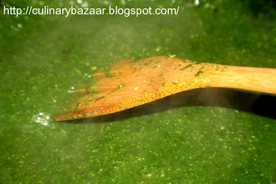 Make balls out of them and steam in a cooker. Make sure not to over steam since it can get v hard. Cool and keep aside.Wash the spinach and blanch them in water for 2-3 min. Liquidise it in a blender.Heat some olive oil in a pan and add the ground paste to it. Cook for a while.