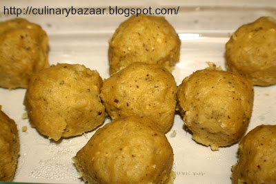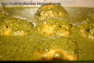 If you thought these are eggs in some green gravy - you would be surprised to know that they are just toor dal with spinach :). Yday, i had fresh bunch of baby spinach that I wanted to make. MIL wanted dal. Hubby said he wanted Kofta! what do I do? and Ya i dint like to cook for a long while! Result, I came up with Toor Dal Kofta in Spinach sauce which will be my entry for Linda's JFI Toor Dal.