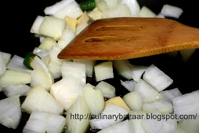 Saute the onions,ginger and chilly in little oil ( Pam Spray should do ) with salt.